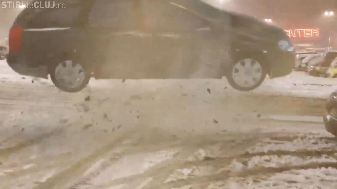 Trucaj de senzatie? Vezi un "accident" spectaculos din parcarea Polus Cluj VIDEO