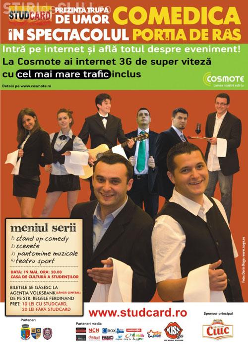 Trupa Comedica ofera "Portia de ras" miercuri, de la ora 20.00, la Casa de Cultura a Studentilor din Cluj. "Pofticiosii" pot veni in orice stare, pentru membrii trupei promit ca ii vor destinde.