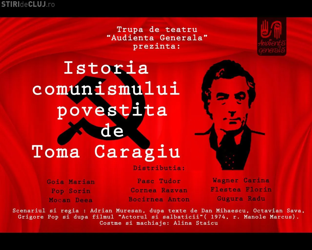 Piesa jucata de artistii clujeni a fost "REVELION CU SCANTEI sau ISTORIA COMUNISMULUI POVESTITA DE TOMA CARAGIU", in regia lui Adrian Muresan, piesa care a fost jucata saptamana trecuta si la Cinema Marasti.