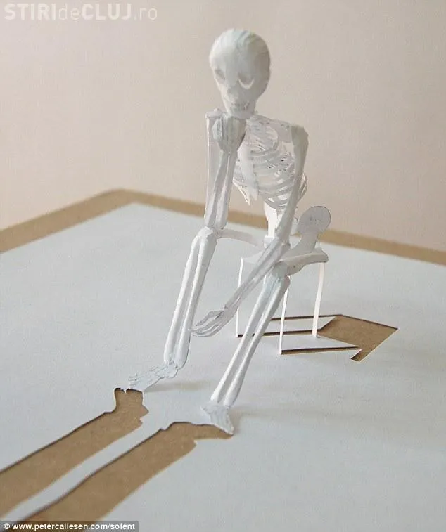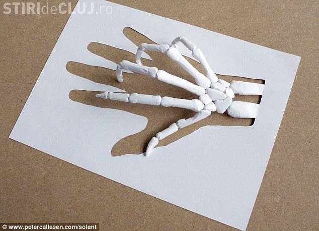 Peter Callesen foloseste pentru operele sale de arta doar lipici, un cuter si o foaie de hartie A4. Artistul are 41 de ani si foloseste o tehnica speciala pentru a "modela" hartie, in asa fel incat din mana lui ies sculpturi incredibile.