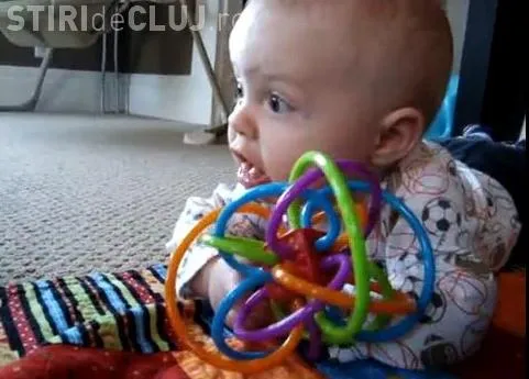 Un videoclip in care un bebelus invata sa muste imitand miscarile pe care le face cainele familiei face senzatie pe internet, reusind sa amuze mii de oameni.