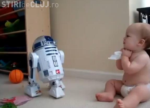 Un bebelus de cateva luni, care discuta cu un robot, starneste zambete pe Internet. Copilul a stat la "taclale" cu o replica a celebrului robot R2D2 din Razboiul Stelelor.