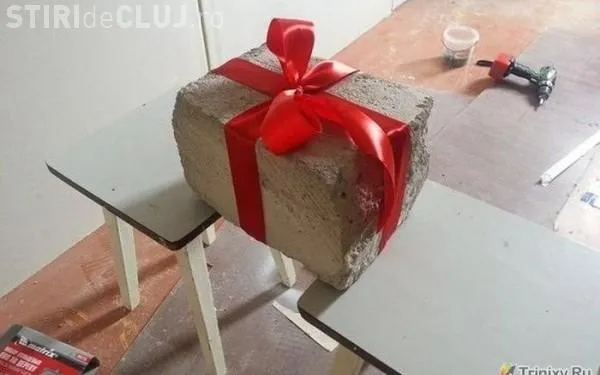 Bărbatul le-a făcut o farsă proaspăt căsătoriților și le-a adus cadou o cărămidă mare din beton, accesorizată chiar și cu o fundă roșie.