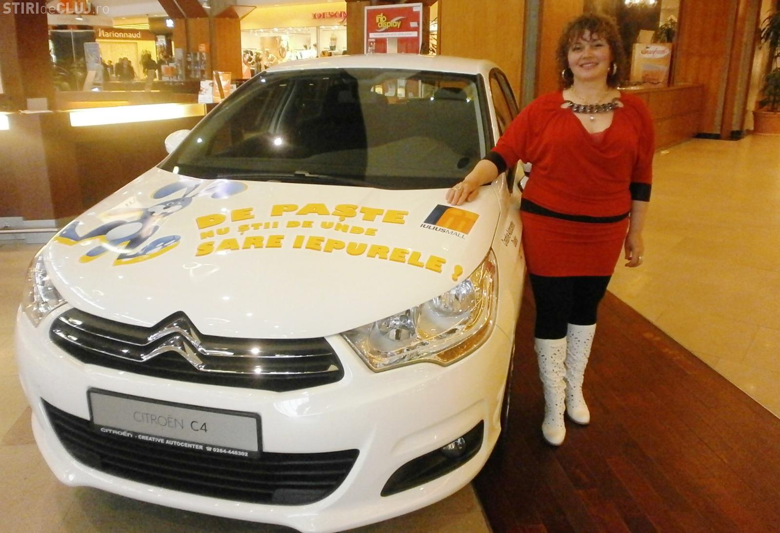 Iepurasul de la Iulius Mall i-a adus unei clujence un nesperat cadou: cel mai ravnit premiu al tombolei de Paste, ultimul model de autoturism Citroen C4. Marcela Hetea, de 49 de ani, a primit masina la care visa, in culoarea preferata. A depus in urna campaniei "La Iulius Mall, nu stii de unde sare Iepurele!", un singur talon si acela castigator!