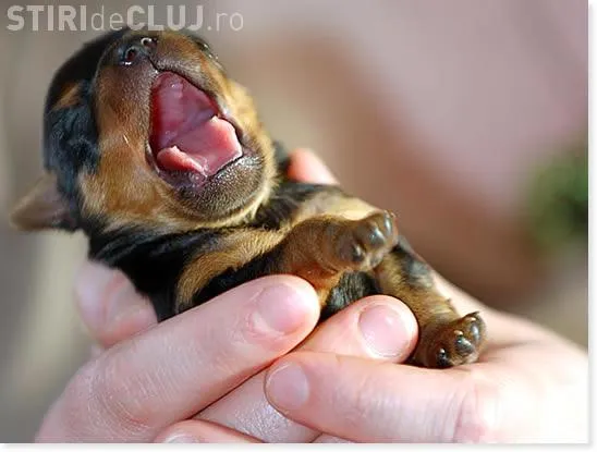 Este vorba de fotografia in care apare o catelusa Doberman si un pompier. Femela era gestanta si a fost salvata din curtea unei case ce a fost cuprinsa de flacari.