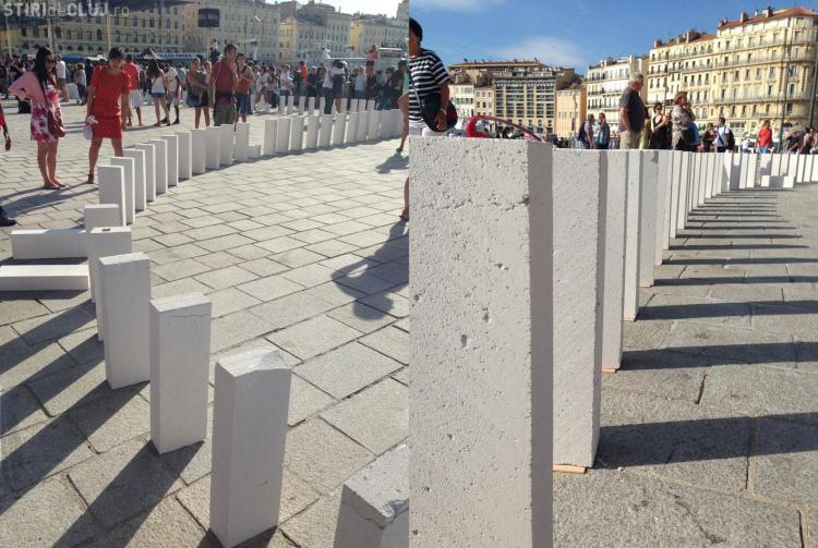 ”Dominouri” este o sculptură în mișcare, adaptată special pentru contextul fiecărui oraș în care este prezentată. Căștigător al premiului Bank of America Merrill Lynch CREATE09, proiectul a străbătut în ultimii ani orașe precum Londra, Copenhaga, Stockholm, Marseille, Helsinki, Ljubljana, iar în 26 septembrie, va fi prezent la Cluj-Napoca, unde 3.000 piese de domino, întinse pe 1.2 km, vor uni Piața Unirii de Piața Mihai Viteazu.