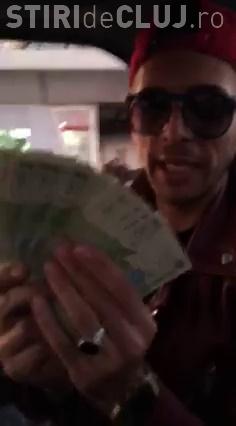 Un tânâr, care își spune Beni Cash, s-a filmat în timp ce arunca, dintr-un taximetru, bani către oamenii din stația de autobuz.
