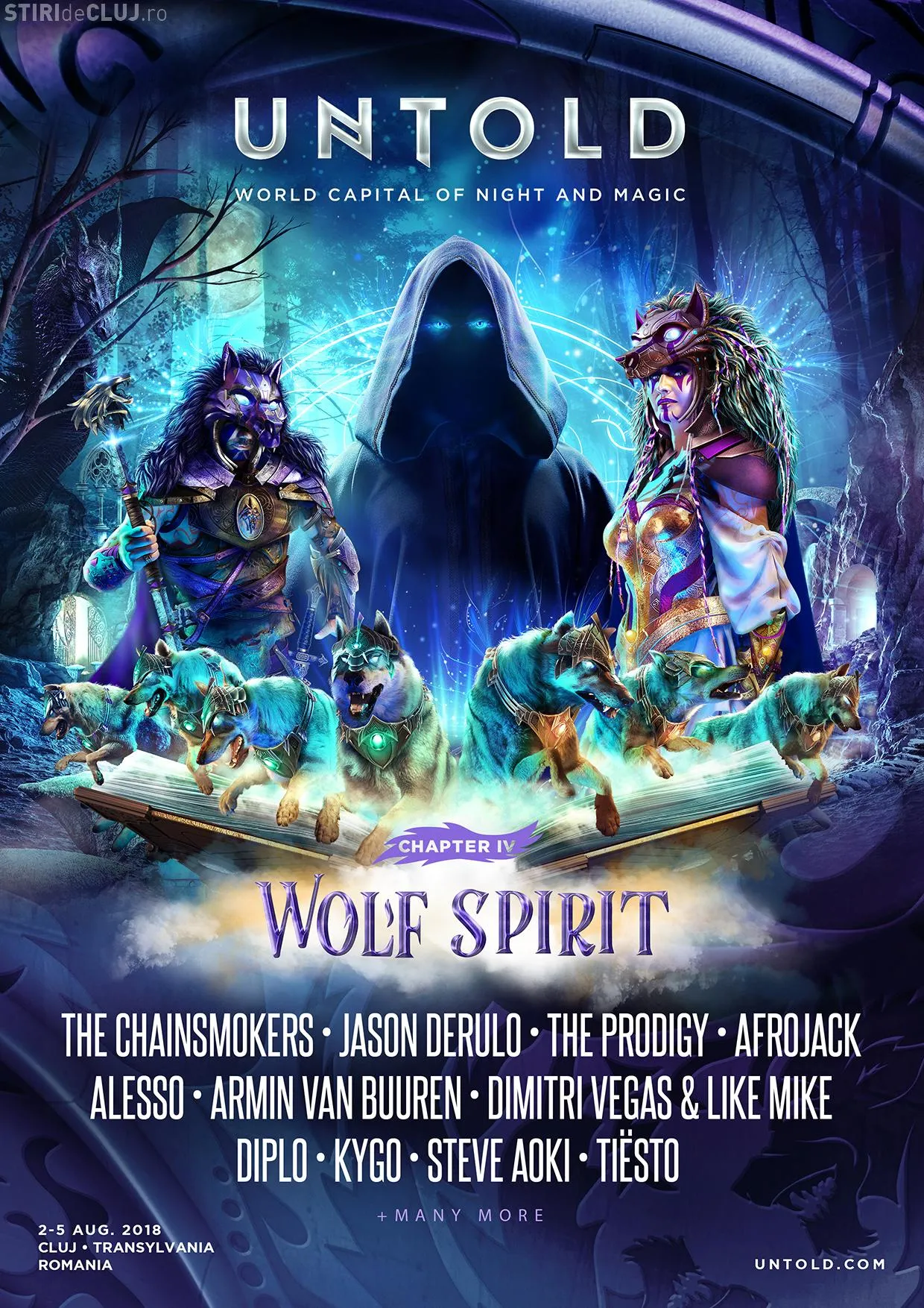 Cel de-al patrulea capitol al celui mai bun festival din Europa, UNTOLD, continuă în 2018 cu o nouă poveste – WOLF SPIRIT - în care își fac apariția noi personaje fantastice, care ghidează spre scenele festivalului zecile de mii de fani.