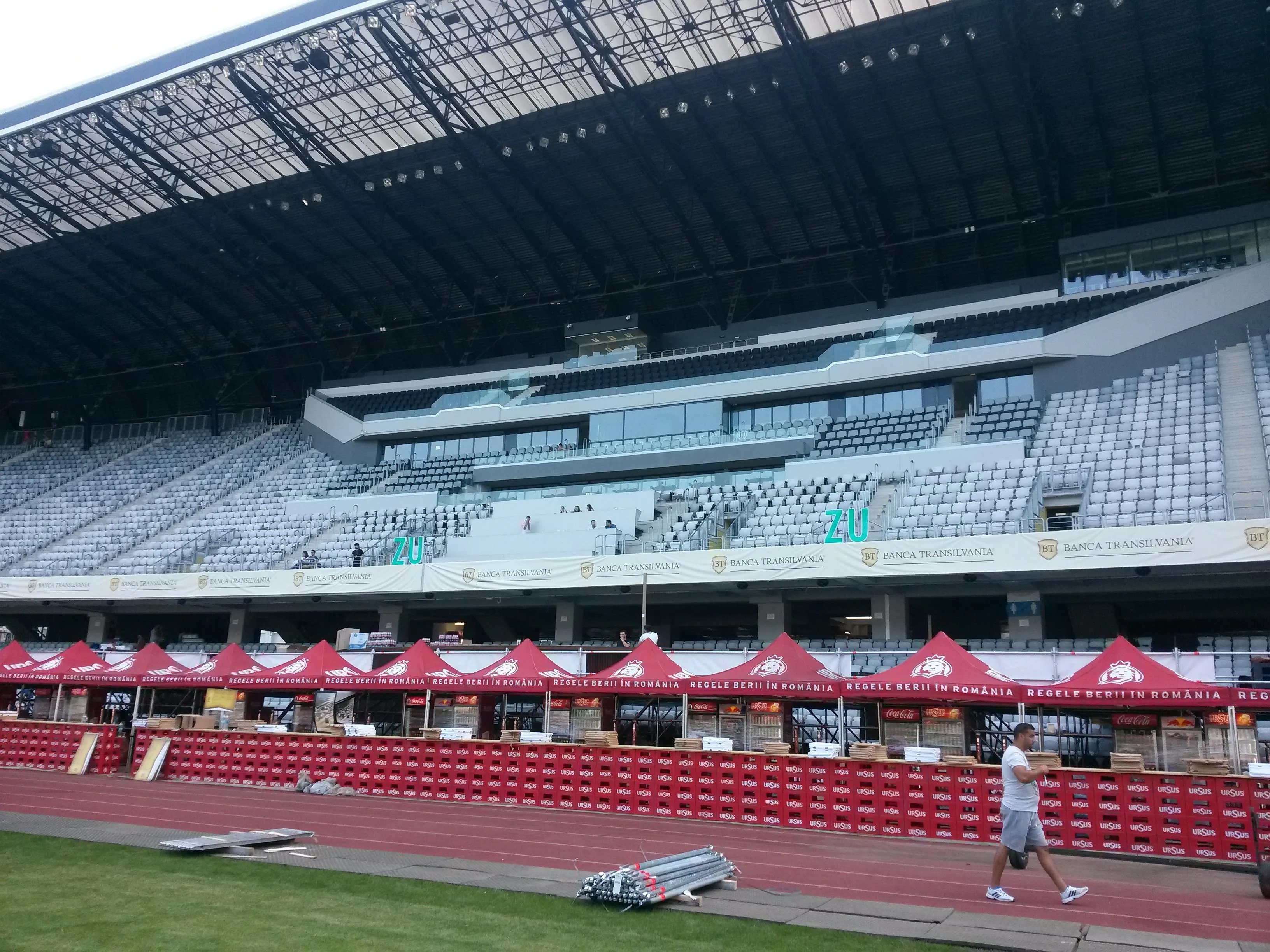 Scena de pe Cluj Arena este uriașă, iar amplasarea ei este gata. Muncitorii mai lucrau miercuri după-amiaza la finisaje.