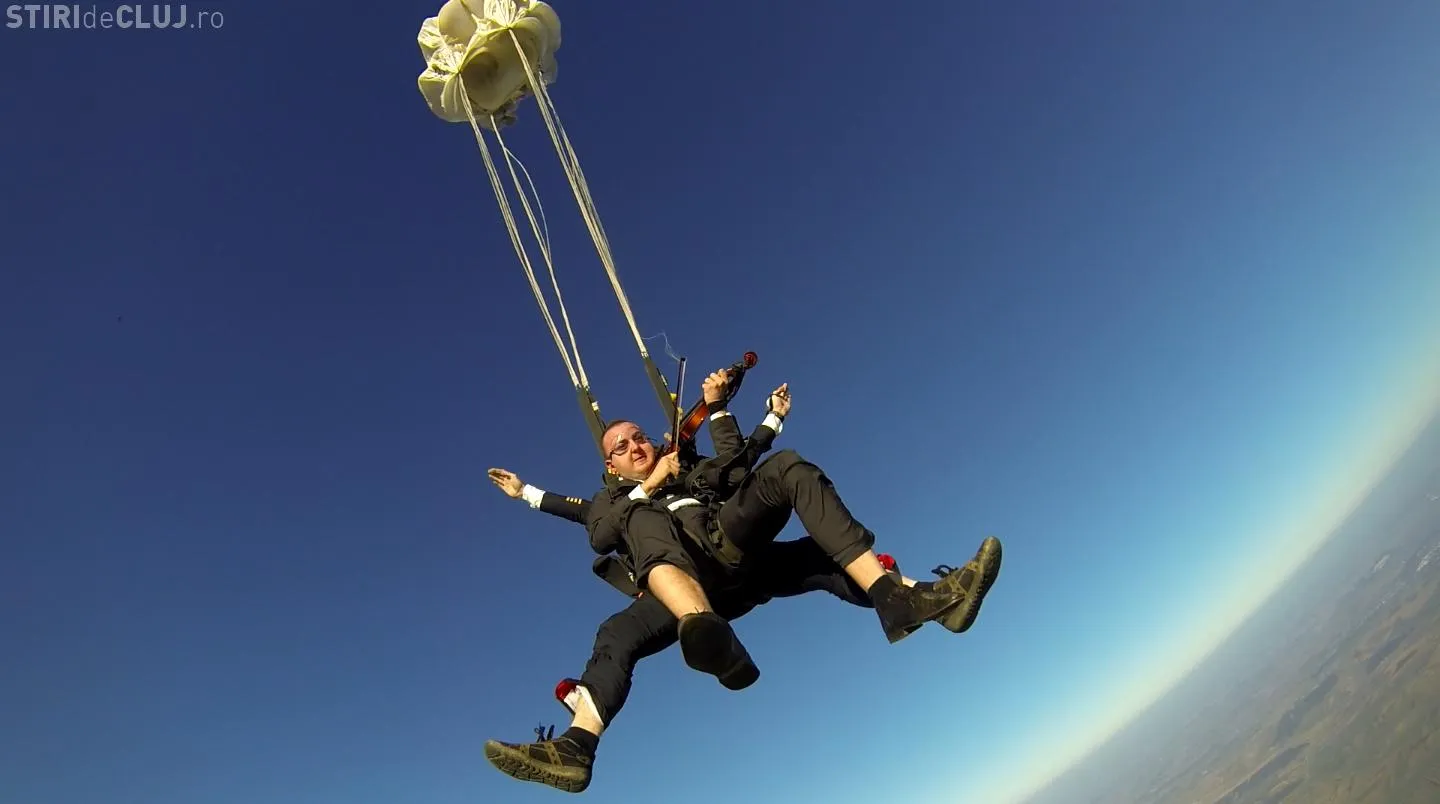 Vasilica Ceterașu și-a lansat clipul filmat în timp ce s-a aruncat cu parașuta la Cluj și a cântat la vioară - VIDEO