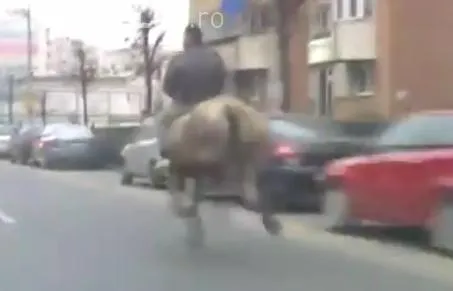 Vestul sălbatic e la Cluj! Un bărbat a fost filmat călărind ”cot la cot” cu mașinile în traficul clujean VIDEO
