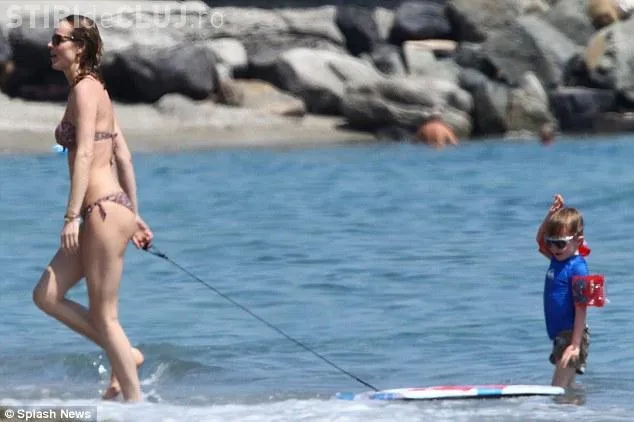 Cunosctul fotomodel Eva Herzigova a fost fotografiata in costum de baie pe o plaja din Italia, la doua luni dupa ce a nascut.