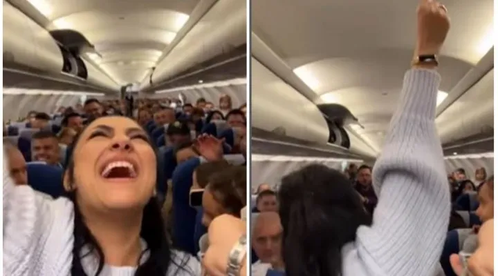 VIDEO. Andra a făcut spectacol în avionul București-Cluj. Vedeta a ridicat toți pasagerii în picioare!