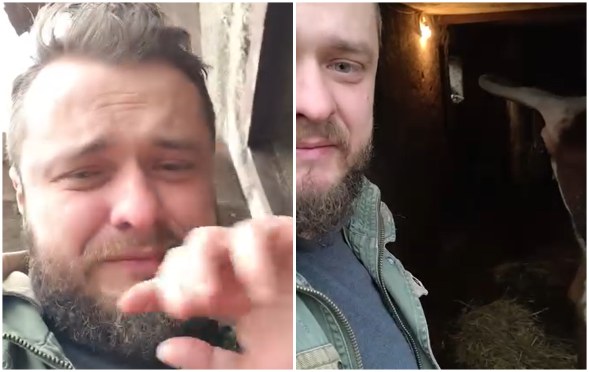 „Influencerul” trebuie să lase telefonul deoparte și să meargă să strângă balega de vacă din grajd. Contrastul între imaginea „lucioasă” vândută pe internet și realitatea simplă a vieții la țară este sursa comică a momentului.
