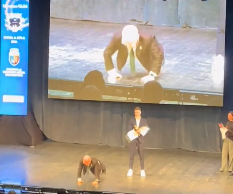 Emil Boc, primar și campion al flotărilor! Boc a fost „deliciul” Galei 10 pentru Cluj: Aclamat de public, a prestat” pe scenă 30 flotări VIDEO