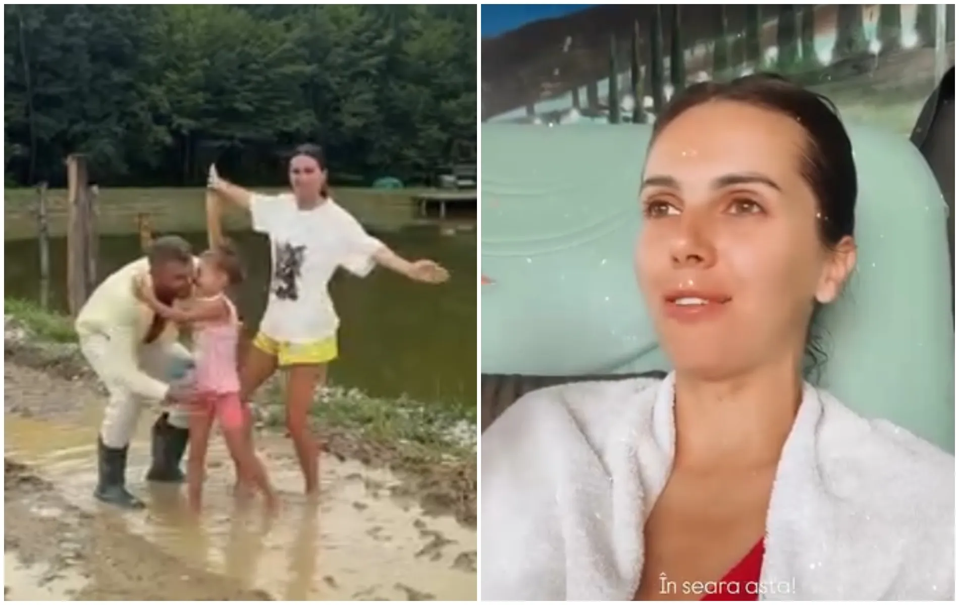 Mai mult, frumoasa vedetă din Gherla nu s-a lăsat intimidată de această vreme rea și a dansat nu doar în ploaie, ci în baltă. I-au fost alături soțul Rareș și fiica Irina, care s-au bucurat împreună de vreme.