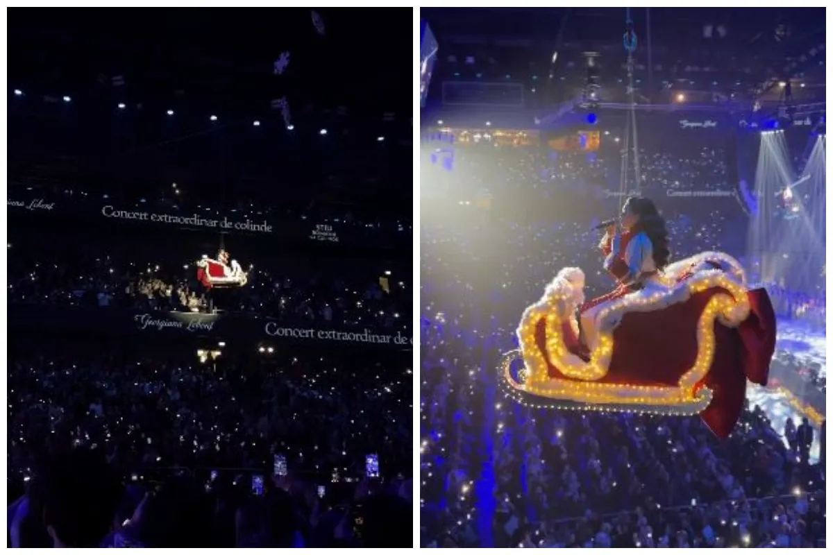 Unul dintre acestea a fost „zborul” cu sania lui Moș Crăciun prin BT Arena, în timp ce interpreta colinda „În seara de Crăciun”. Vizibil emoționată, Georgiana i-a chemat de la înălțime pe cei din sala să cânte alături de ea.
