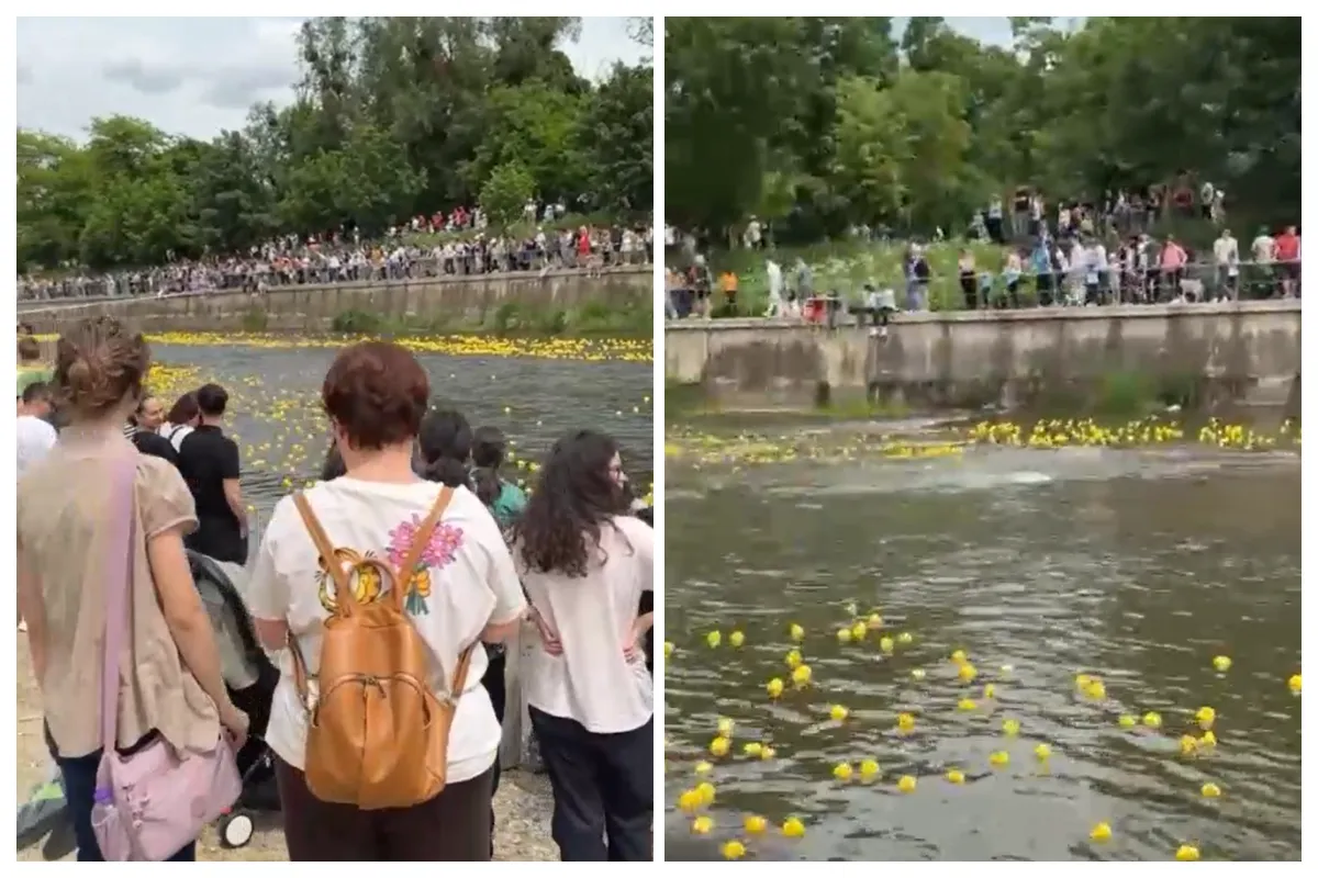 VIDEO Mii de clujeni au luat cu asalt malurile Someșului pentru spectaculoasa Cursă de Rățuște 2025. 20 de mii de rățuște, lansate simultan pe Someș