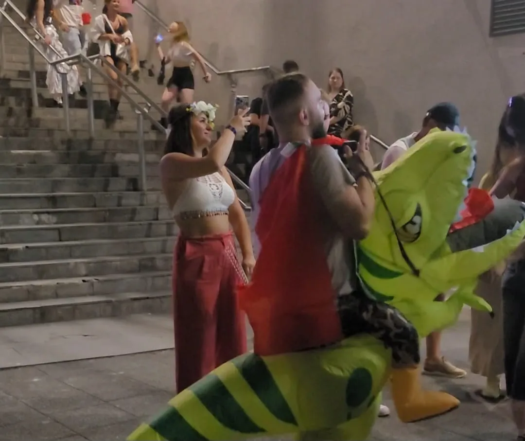 VIDEO. Nu doar femeile au impresionat cu ținutele extravagante la festivalul Clujului. Un tânăr costumat în dinozaur a rupt tiparele la UNTOLD