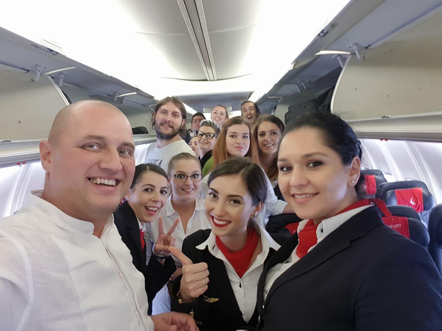 Opt studenți de la Academia de Muzică ”Gheorghe Dima” din Cluj-Napoca au susținut două concerte simfonice in timpul cursei aeriene Cluj Napoca – Londra si retur.