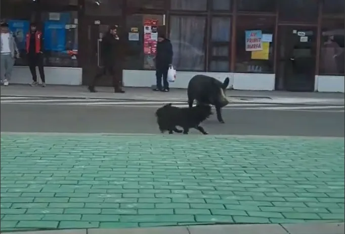 Turda, orașul clujean cu o viața urbană poate fi surprinzător de... rurală! De data aceasta, un video amuzant surprinde un moment deja aproape tipic de „normalitate” în oraș, unde un porc își face apariția pe stradă, traversând nestingherit, fără nicio grijă. Și pentru că, evident, nicio trecere de pietoni nu e necesară pentru acest animal cu apetit de explorator, el se îndreaptă cu pași linștiți către „fratele” său – un cățel care îl așteaptă pe partea cealaltă a drumului.