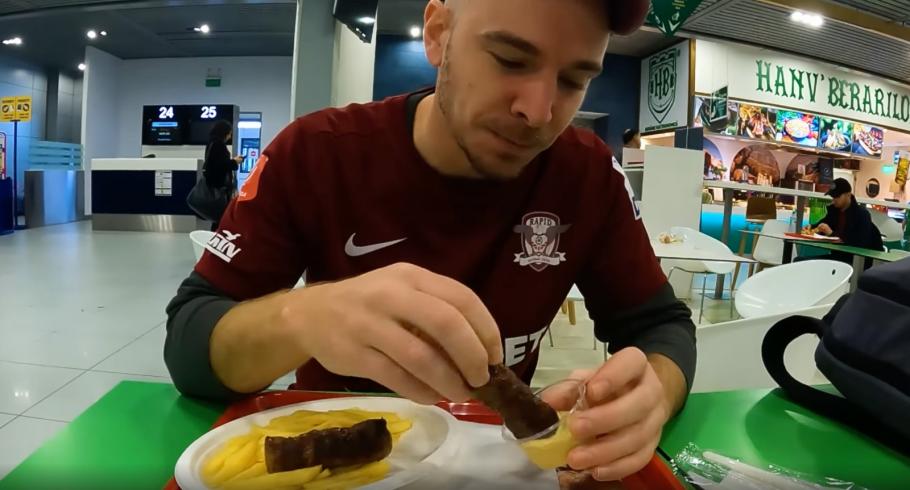 „După cum se pare, mi-am luat țeapă. Ivana, nu o să îți vină să crezi prețul. 14 lei un mic. 53 de lei pentru doi mici, cartofi prăjiți și apă. Ar fi bine să fie cei mai buni mici pe care i-am mâncat în viața mea. Măcar mi-au dat și muștar. Ultimii mici mâncați în România, să vedem: mmmm, au meritat fiecare leu, sunt foarte buni. Să fim onești, sunt prea scumpi, dar până și micii din aeroport sunt buni aici. E și prima dată când mănânc mici la micul dejun. Sunt de cinci ori mai scumpi decât ar trebui. Exagerez, dar pe stradă un mic e patru lei, aici e 14”, a declarat Steve.