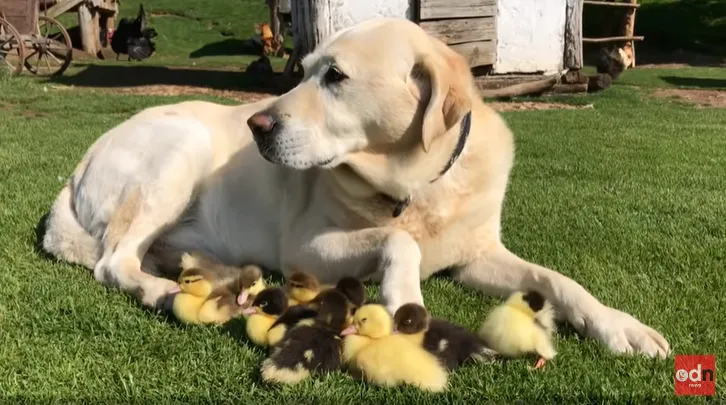 VIDEO - Un labrador, „tată” pentru 15 răţuşte abandonate de mamă. Imaginile cu părintele grijuliu au făcut înconjurul lumii