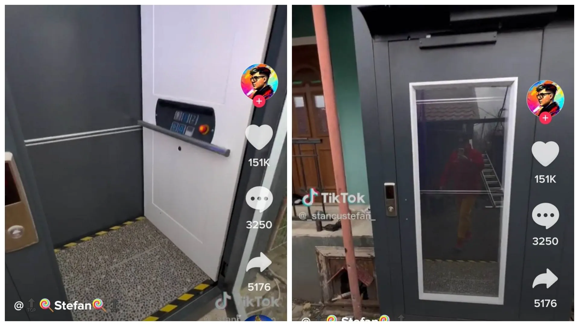 Cu toate că în jur nu este tocmai lux, tiktokerul se mândrește cu noul său lift modern. Clipul video în care apare liftul care urcă cele două etaje a strâns 3 milioane de vizualizări și a stârnit comentariile amuzante ale celor care l-au văzut.