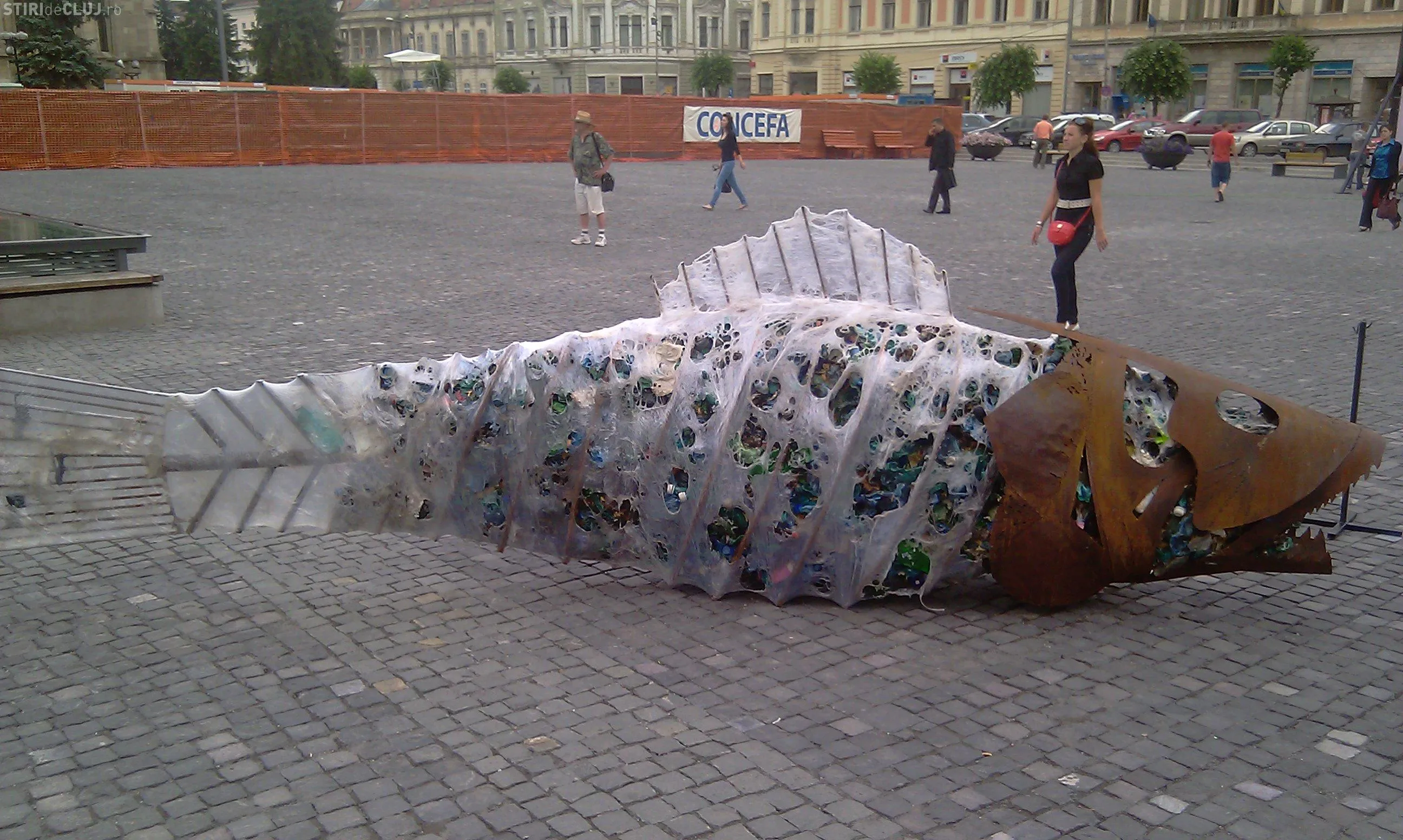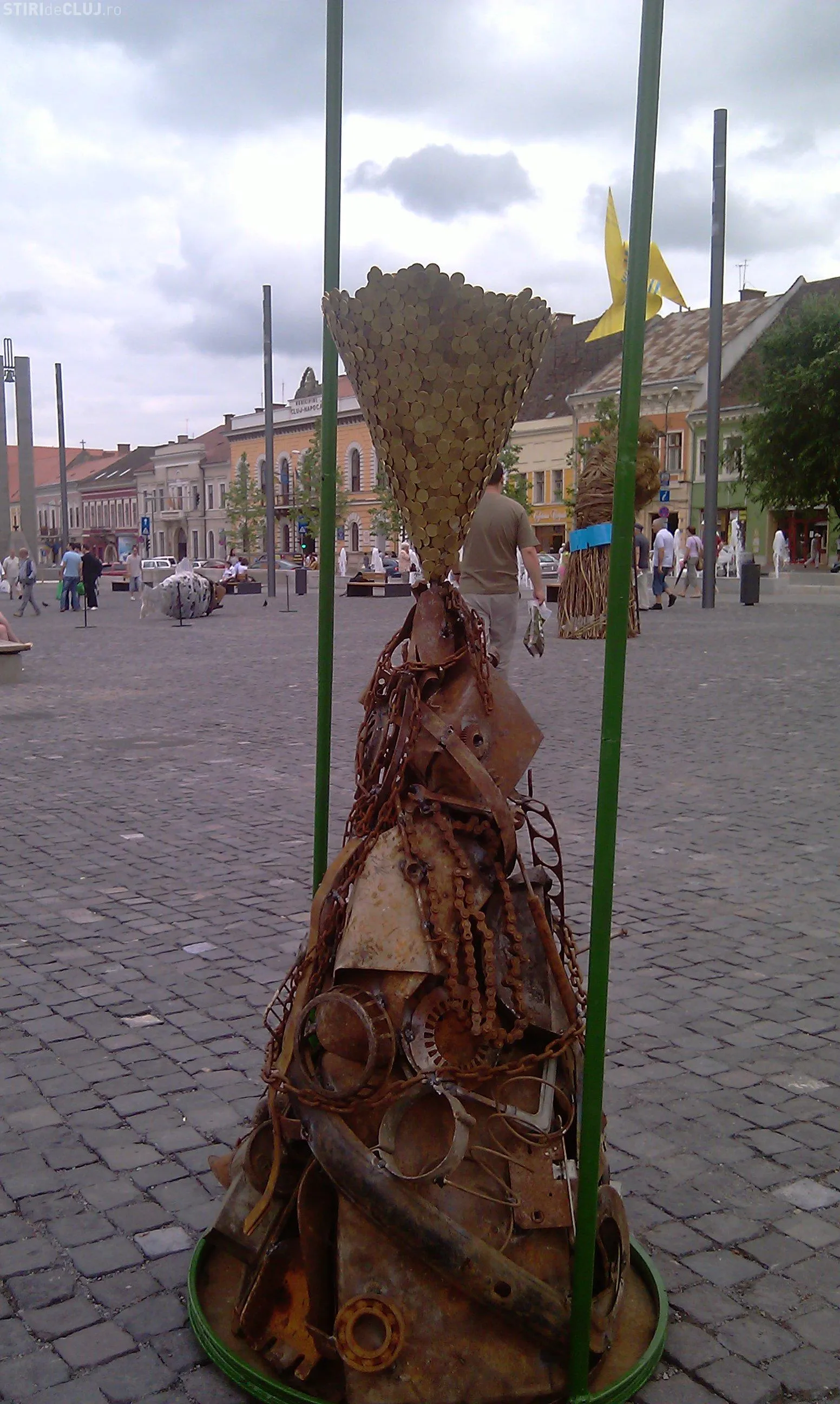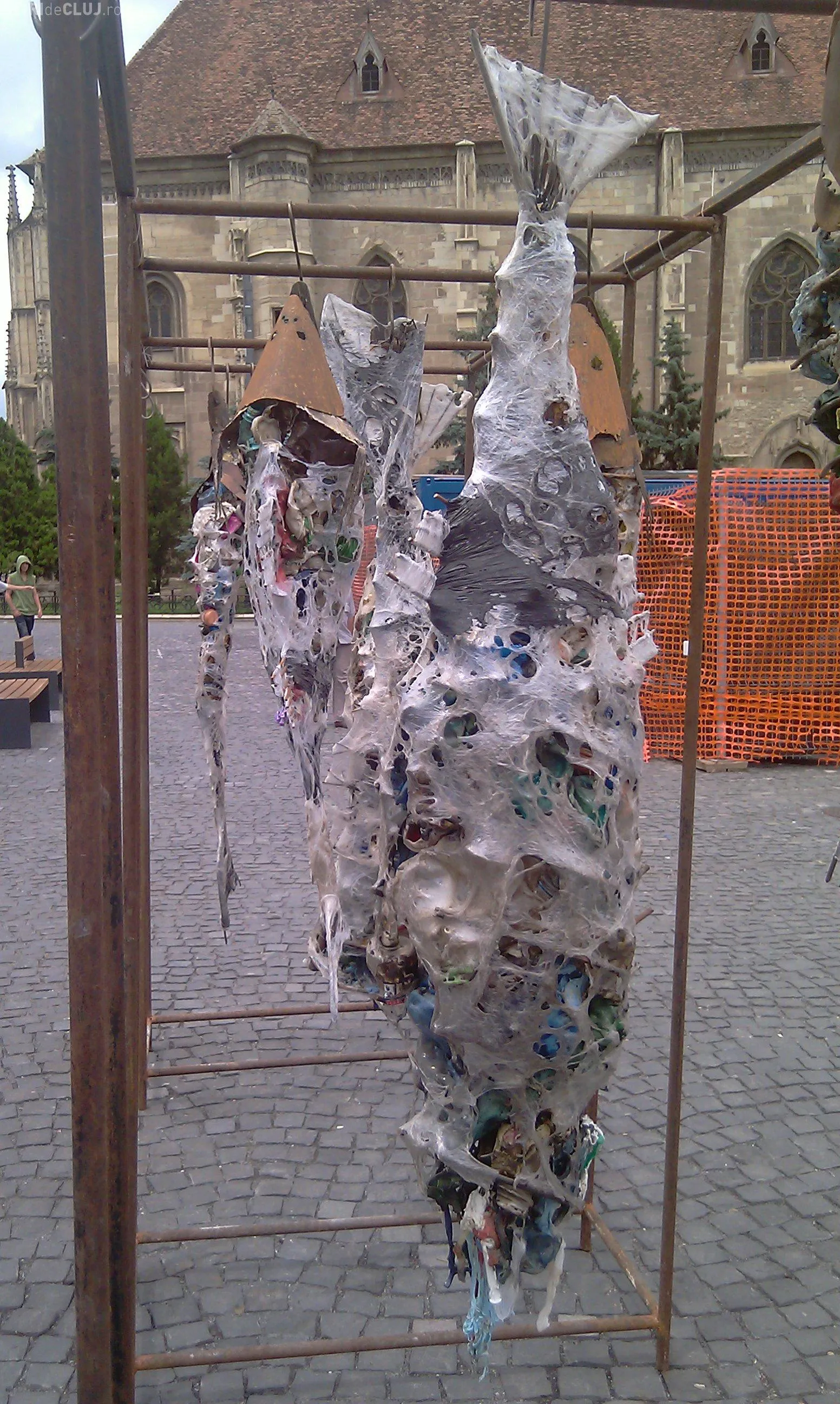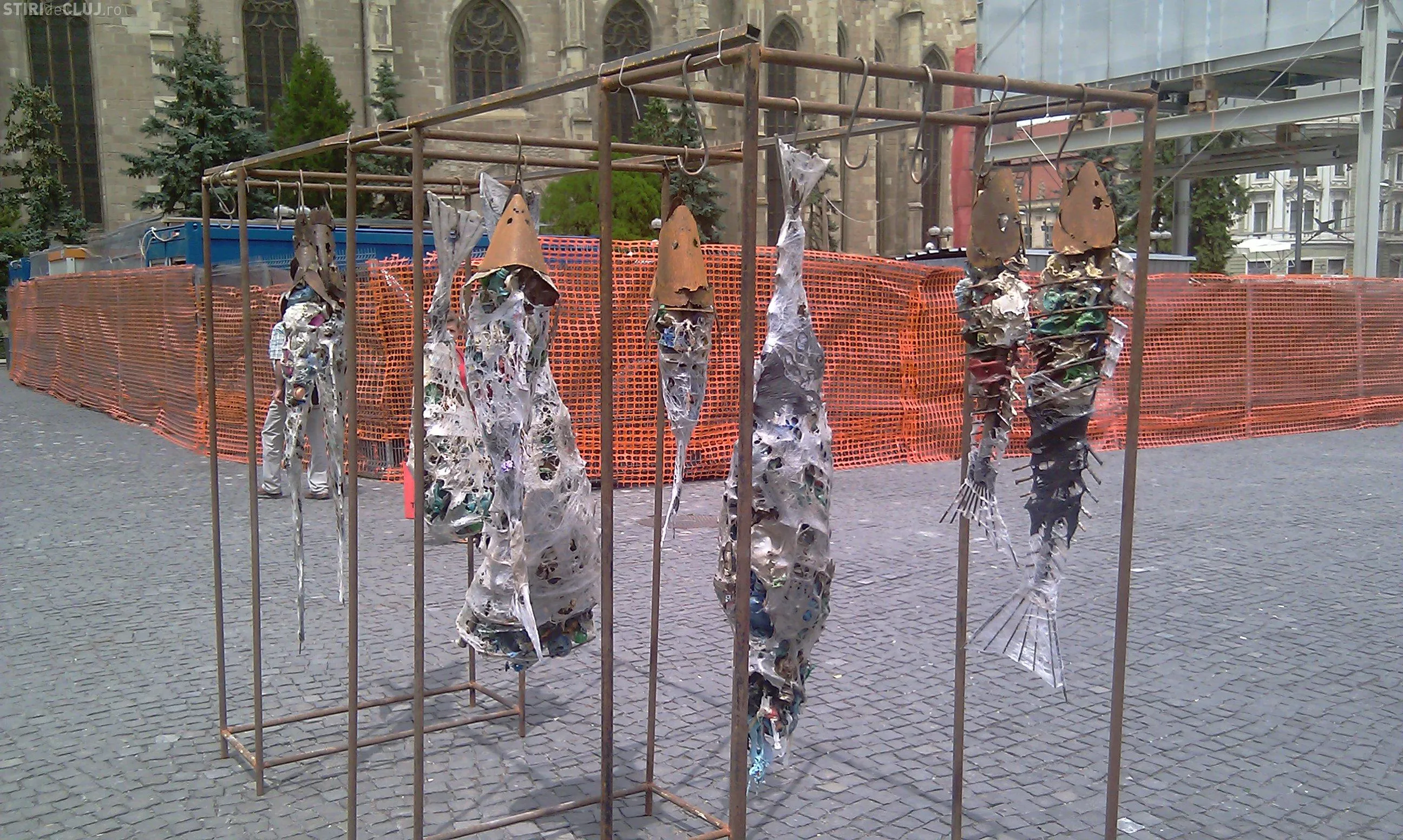 Festivalul de mediu si film ecologic "Planeta Report" va incepe la ora 18.00 cu o expozitie de statui gigant, realizate din deseuri. In prim plan este un telefon Nokia facut din alte "mobile" defecte sau un peste care "transporta" PET - uri.
