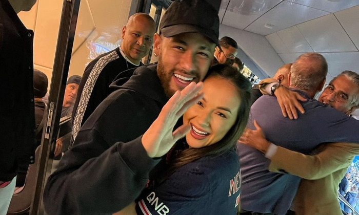 Vedeta a profitat de faptul că Neymar nu a jucat în meciul din grupele UEFA Champions League, dar și de faptul că era așezat foarte aproape de ea, astfel că l-a rugat pe fotbalist să facă o poză cu ea.