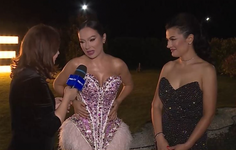 ”Eu am ales să vin îmbrăcată într-o rochiță pe care am folosit-o la un colaj, pe care o să-l lansez zilele acestea. Cred că e una dintre cele mai speciale pe care eu le-am îmbrăcat până acum. Așa că mă bucur că am purtat-o la petrecerea lor pentru că aici știam clar că o să fie foarte multe ținute spectaculoase. Pentru că e un eveniment de înaltă clasă. Nu puteam să vin mai prejos. E grea rochia… sunt ca rochiile de la oșeni, când o dai jos, ești vânătă pe aici”, a declarat artista.
