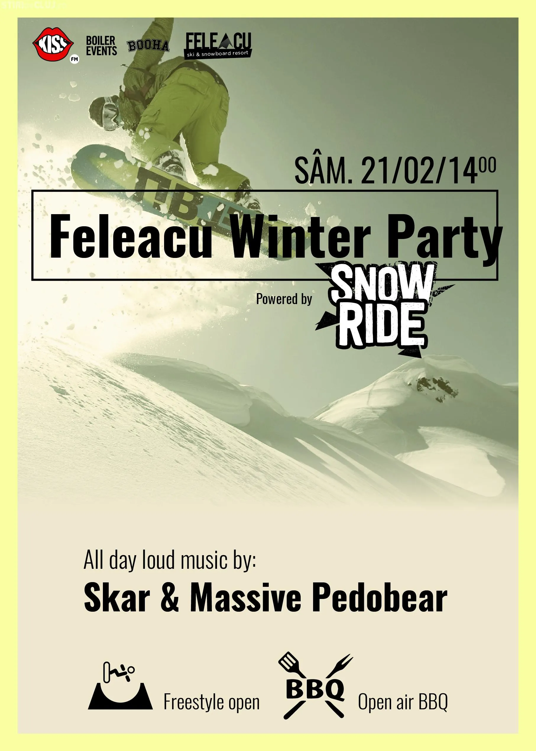 Feleacu Wiunter Party este parte a petrecerilor de promovare Electric Castle și o avanpremieră pentru cel mai așteptat eveniment al iernii, organizat de Booha Bar - Snowride, din 7 până în 14 martie, din Puy-Saint-Vincent, în Alpii Francezi.