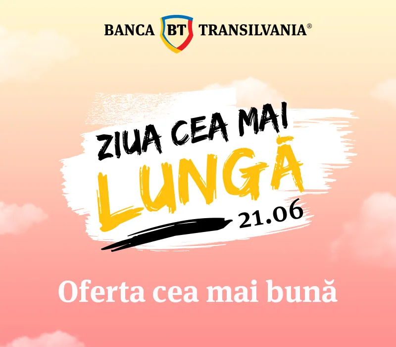 Banca Transilvania lansează astăzi campania ”Ziua cea mai lungă”: peste 15 ore de shopping bancar online, discount la Creditul de nevoi personale – inclusiv pentru refinanțarea creditelor de la alte bănci - şi puncte STAR pe cardul de cumpărături STAR Forte pentru cei care aplică online.