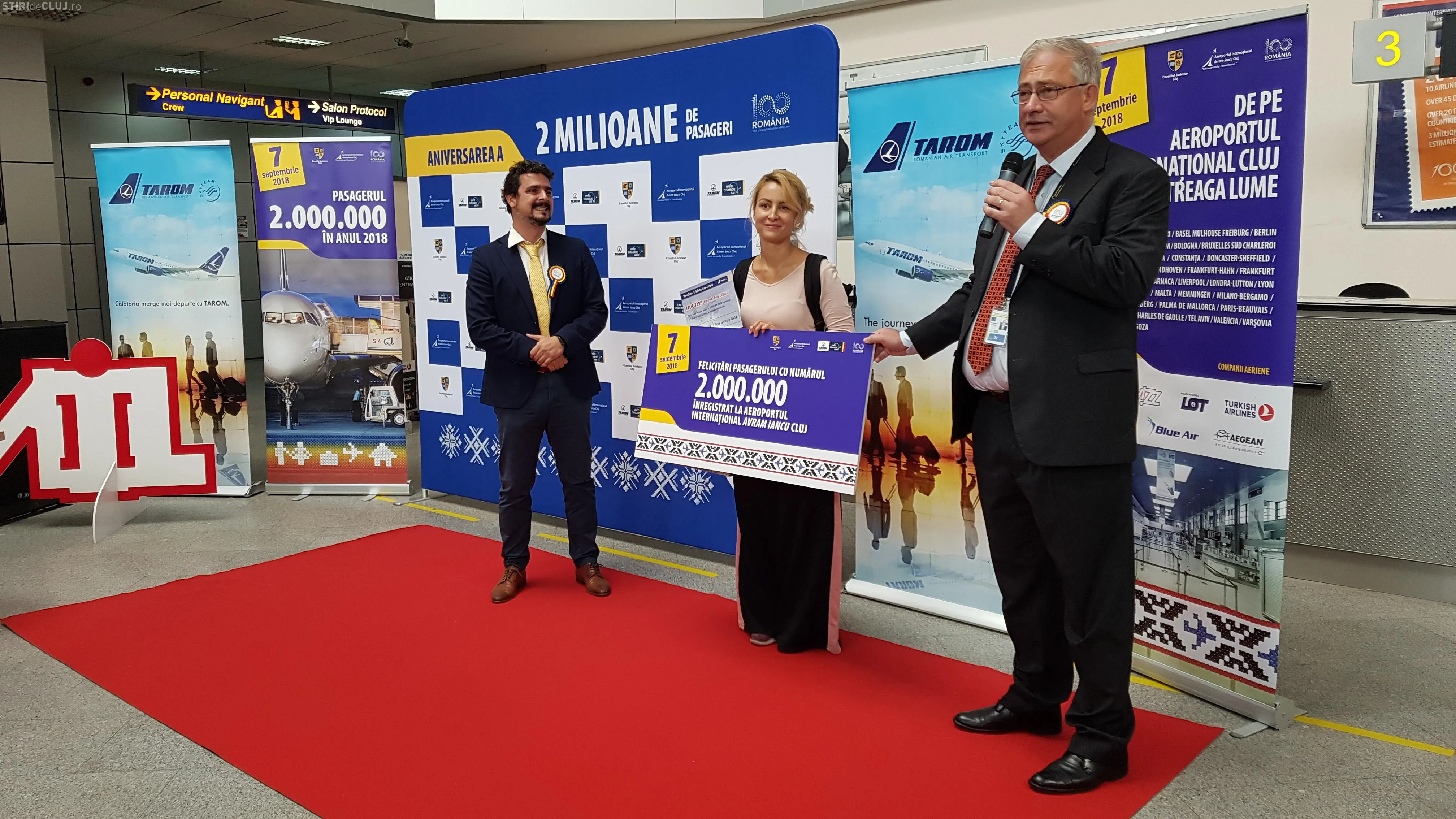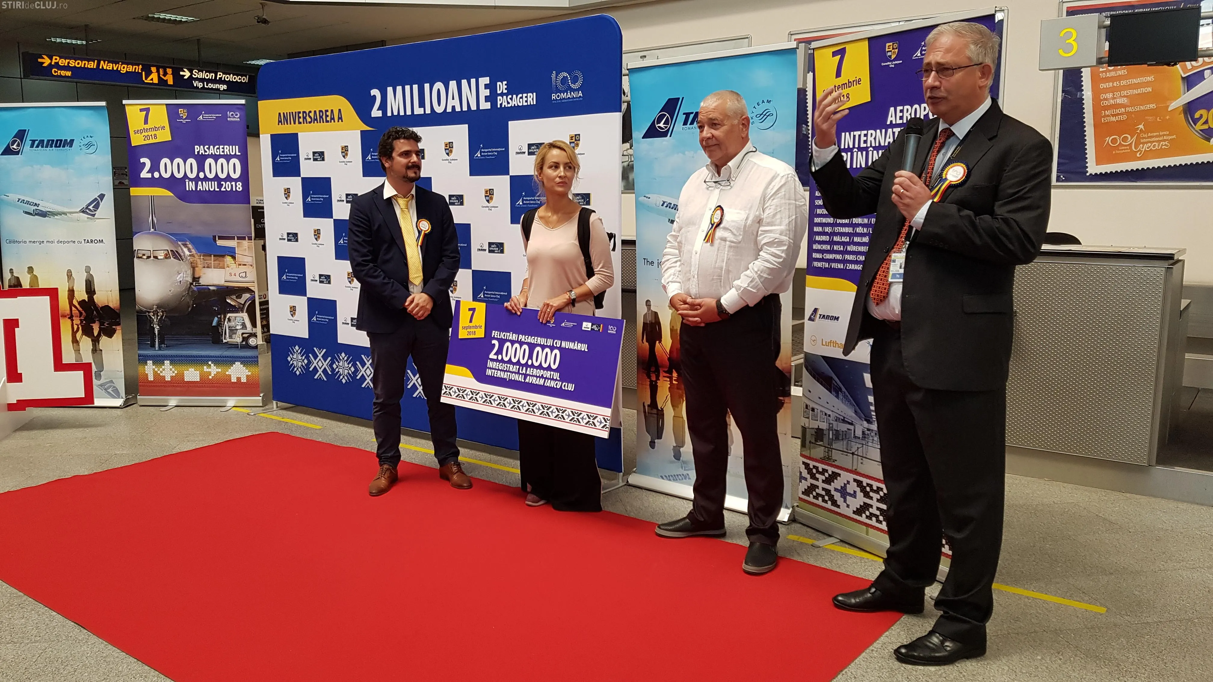Aeroportul Internațional ”Avram Iancu” Cluj a sărbătorit astăzi pasagerul său cu numărul 2.000.000 înregistrat în anul 2018, anul centenar al Marii Uniri. Acest prag semnificativ de pasageri este atins anul acesta cu două săptămâni mai repede comparativ cu anul 2017, ca urmare a unui trend pozitiv de creștere a traficului aerian din primele 8 luni ale anului.