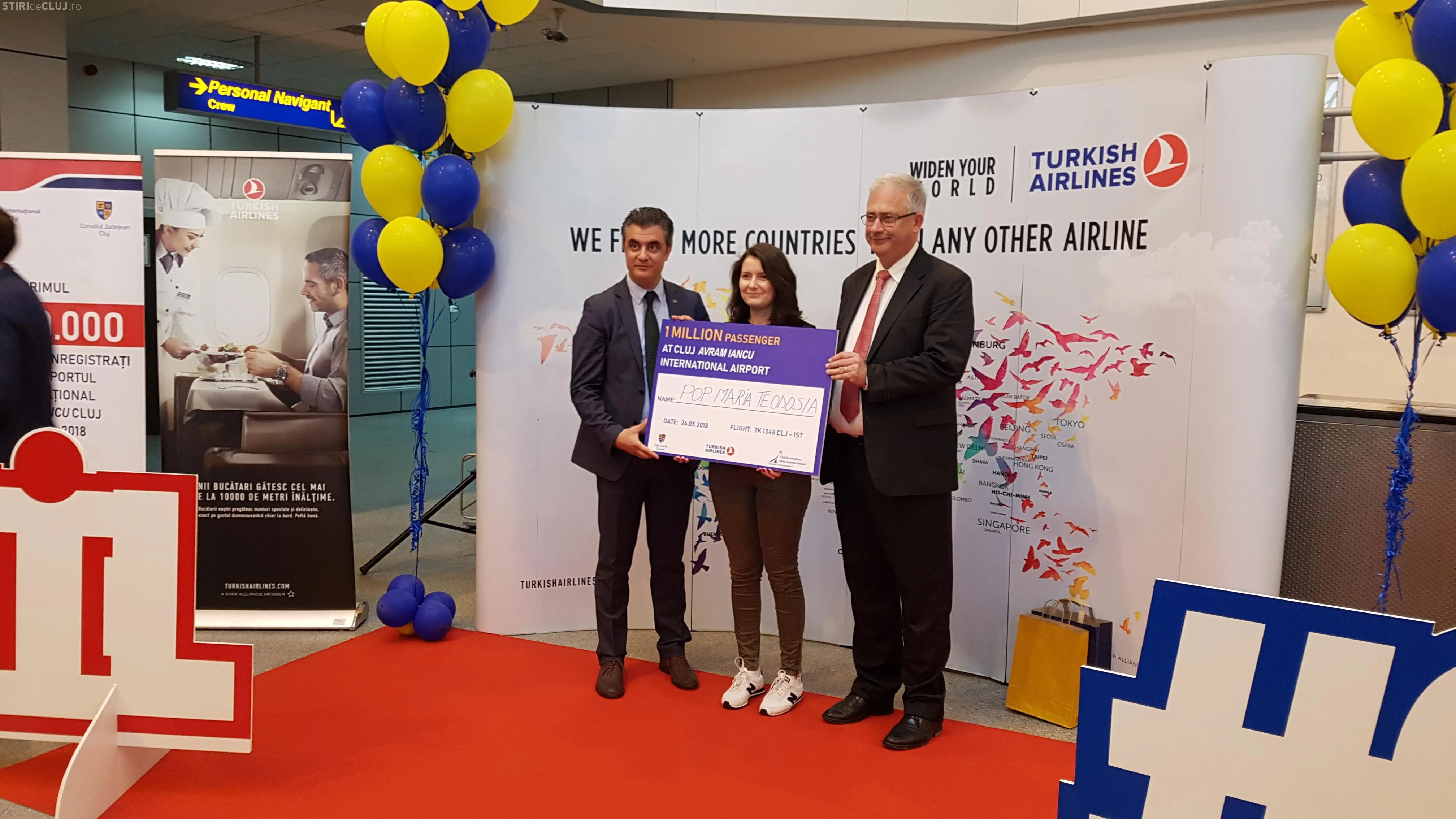 Pasagerul cu numărul un milion înregistrat în anul 2018 a fost transportat anul acesta de către operatorului aerian Turkish Airlines, pe zborul de la Cluj-Napoca la Istanbul. Norocosul pasager, Pop Maria Teodosia, a fost selectat o dată cu check-in-ul pasagerilor și premiat în prezența reprezentanților companiei aeriene, a reprezentanților Consiliului Județean Cluj și a altor oficialități.