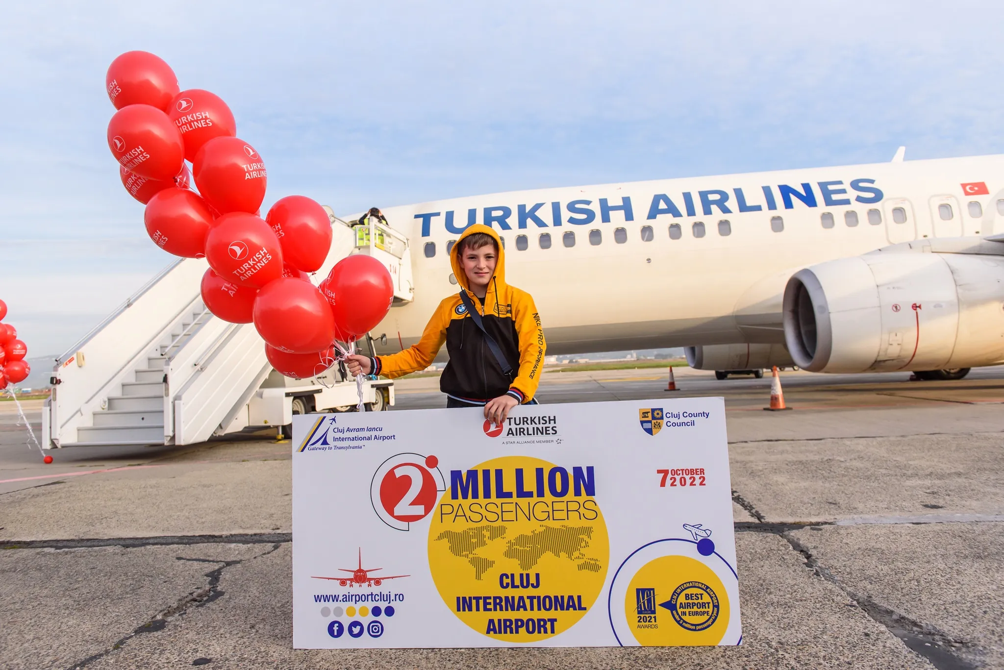 Pasagerul cu numărul 2.000.000 înregistrat în anul 2022, a fost transportat anul acesta de către operatorul aerian Turkish Airlines, pe zborul său cu numărul TK 1047, de la Istanbul la Cluj-Napoca. Norocosul pasager a fost selectat și premiat la debarcare, în prezenţa reprezentanților autorităţilor locale, a instituţiilor şi organizaţiilor partenere, a reprezentanţilor aeroportului şi companiei aeriene, respectiv a reprezentanților mass media.