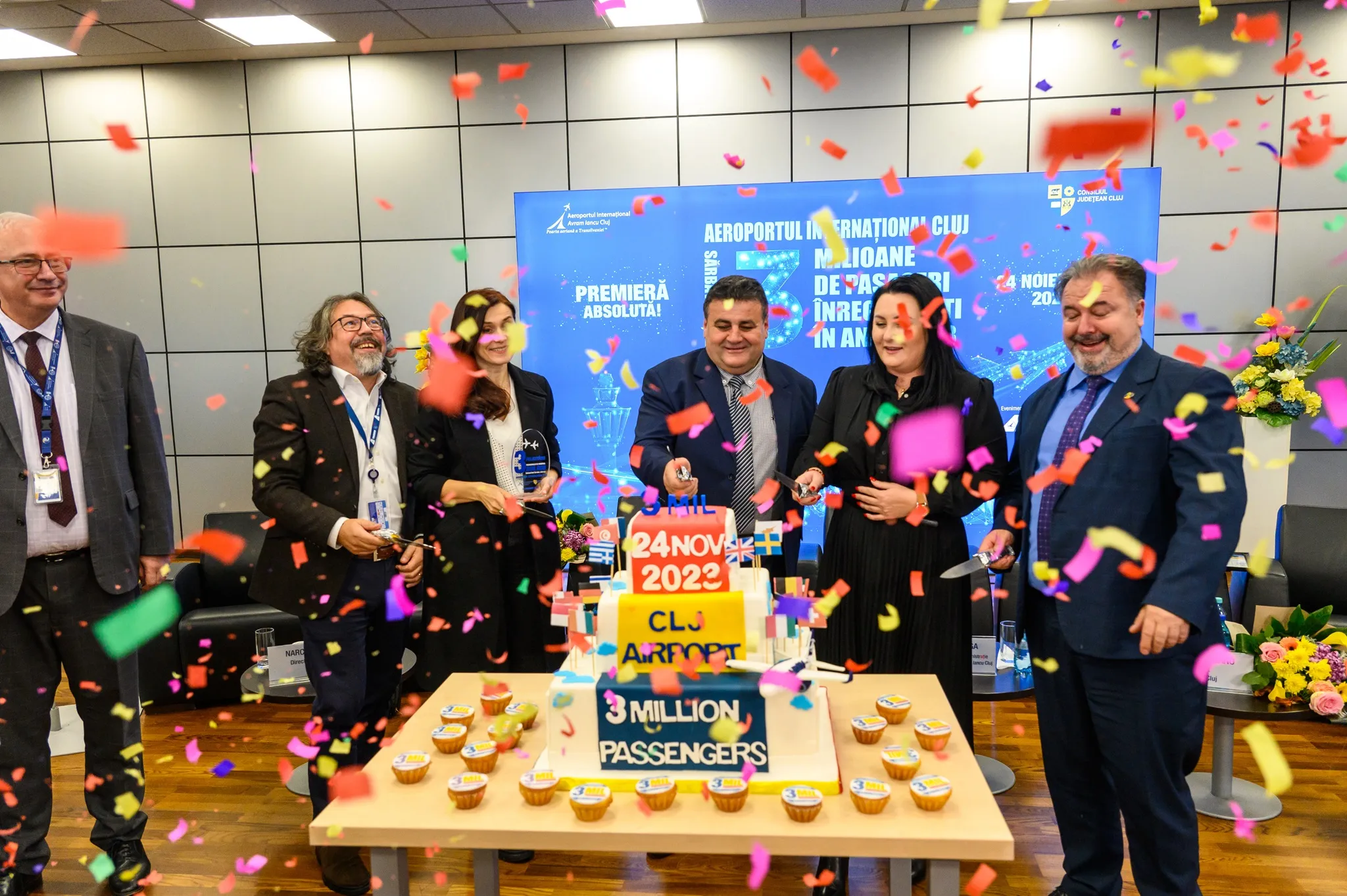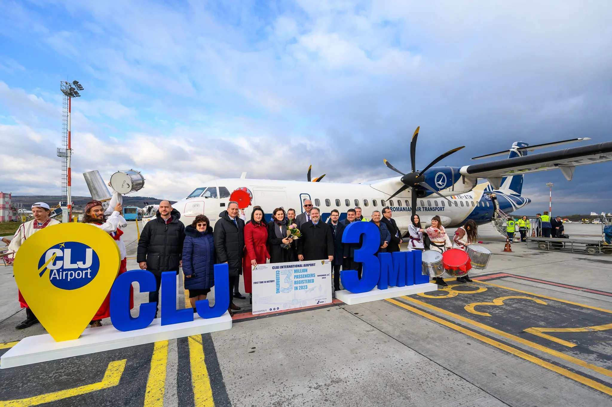 Aeroportul Internațional Avram Iancu Cluj alături de Consiliul Judeţean Cluj şi compania aeriană TAROM au sărbătorit astăzi în premieră absolută, pasagerul cu numărul 3.000.000 înregistrat pe aeroportul clujean, în anul 2023. Evenimentul istoric a reprezentat un reper deosebit de important pentru aeroport dar şi pentru regiunea pe care o deserveşte.