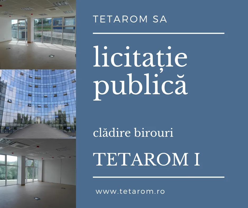 TETAROM S.A., în calitate de administrator al unor bunuri aparținând domeniului public al Județului Cluj, anunță organizarea unei proceduri de licitație publică în vederea închirierii a două spații situate în clădirea de birouri A2 (D+P+5E) din cadrul Parcului Industrial Tetarom I, Municipiul Cluj-Napoca. Spațiile disponibile au suprafețele de 31,00 mp și 43,90 mp și pot fi închiriate în conformitate cu prevederile legale și hotărârile Consiliului Județean Cluj.