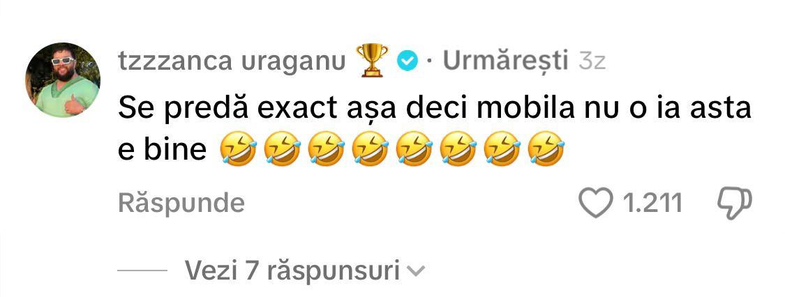Nici măcar cântărețul Tzancă Uraganu nu s-a putut abține când a văzut apartamentul din Cluj-Napoca și a lăsat un comentariu plin de umor: „Se predă exact așa, deci mobilă nu o ia. Asta e bine”.