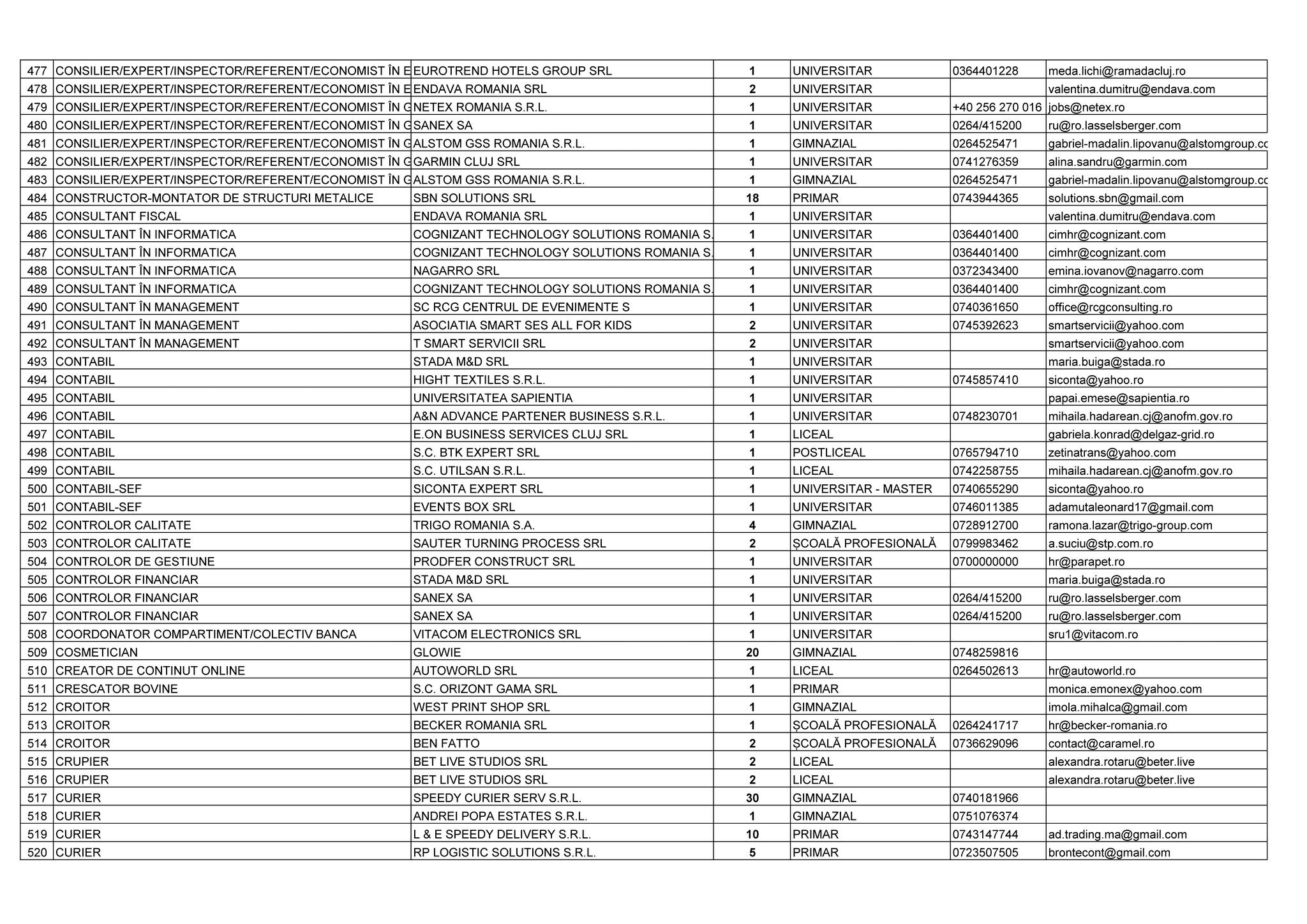 Agenția Județeană pentru Ocuparea forței de muncă a publicat astăzi lista actualizată a locurilor de muncă vacante în județul Cluj.