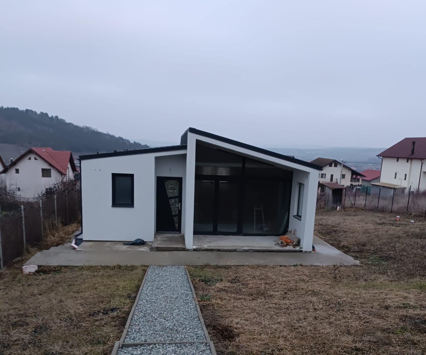 Izolație exterioară de 14 cm polistiren, iar la interior 13 cm celuloză injectată.