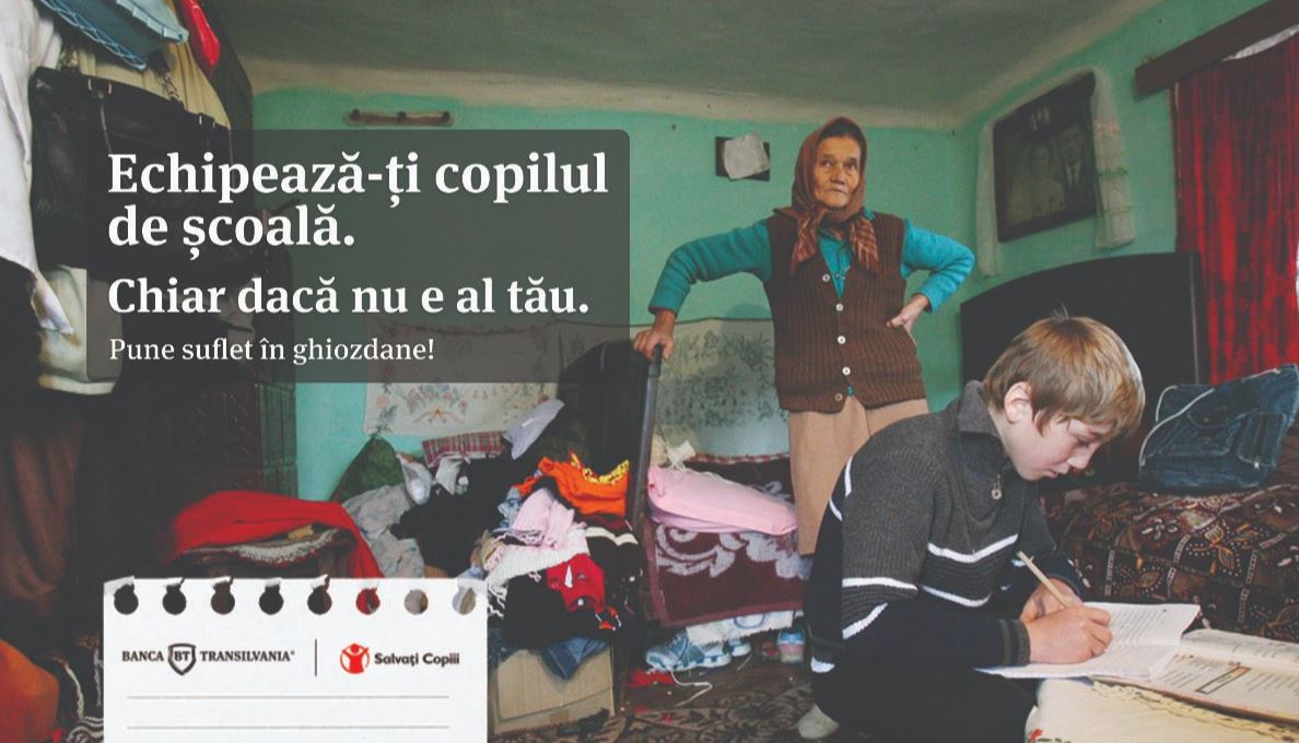 Banca Transilvania şi Organizaţia Salvaţi Copiii România lansează campania ”Echipează-ţi copilul să meargă la şcoală chiar dacă nu e al tău” pentru a ajuta copiii din familii nevoiaşe să fie pregătiţi pentru şcoală, indiferent cum va începe aceasta, în contextul pandemiei. BT şi Salvaţi Copiii încurajează românii să se implice în această cauză prin donaţii online.