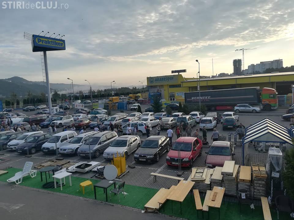 Pentru că sunt reduceri la Praktiker Cluj, oamenii au făcut coadă în fața magazinului din Florești încă de la ora 7.00.