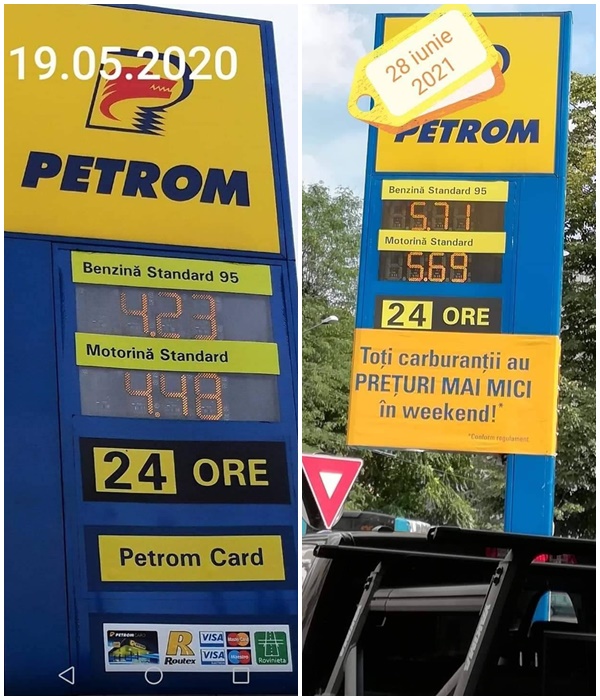 ”De la 4,23 lei (în 19.05.2020) la 5,71 lei - azi. Deci într-un an și puțin 1.48 lei a crescut, adică vreo 35% a crescut prețul la benzină. Bineeeeee! Hai ca se poate mai băieți. Mai aveți puțin și distrugeți tot…”, transmite un șofer, care a monitorizat prețurile.