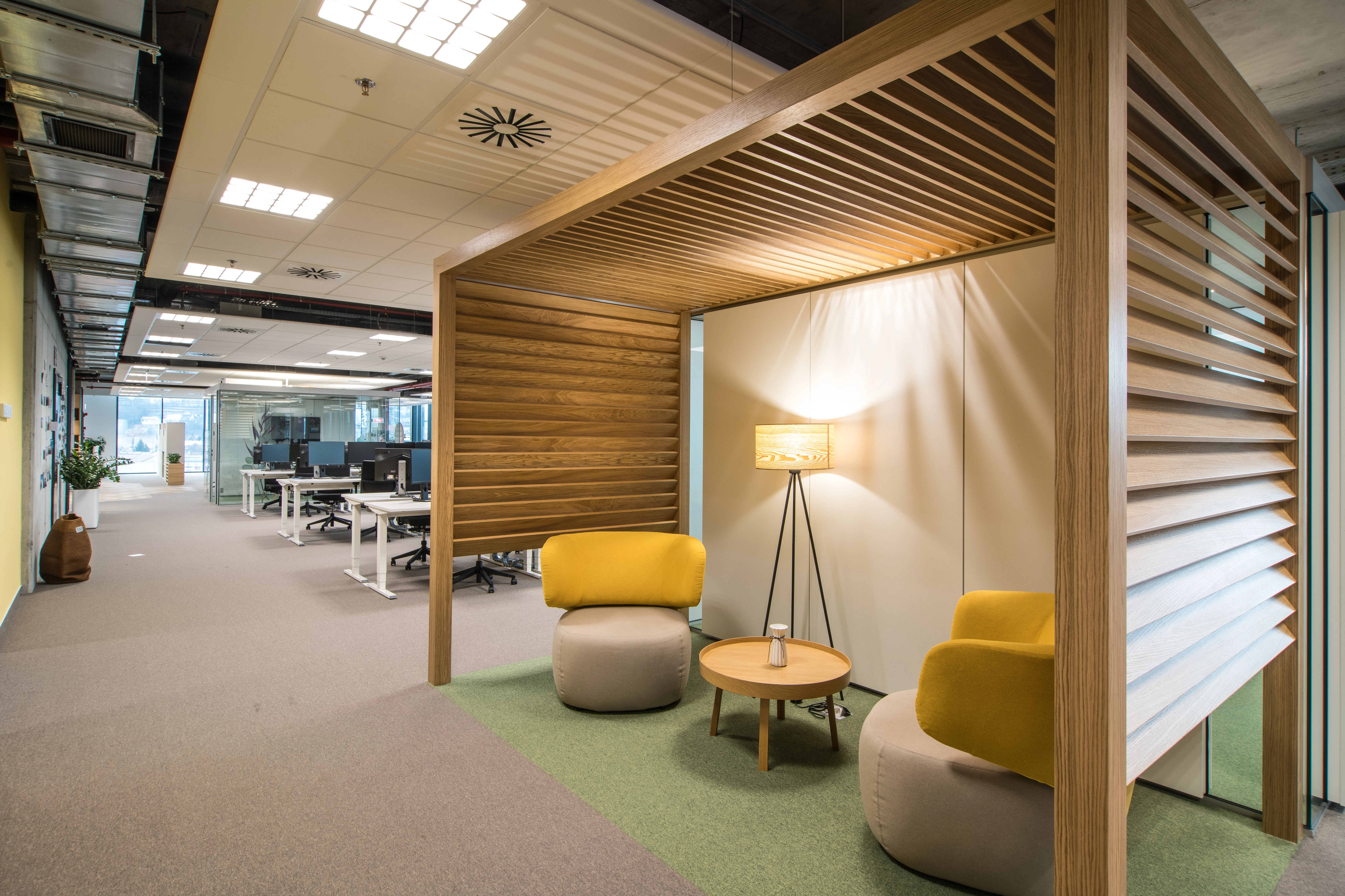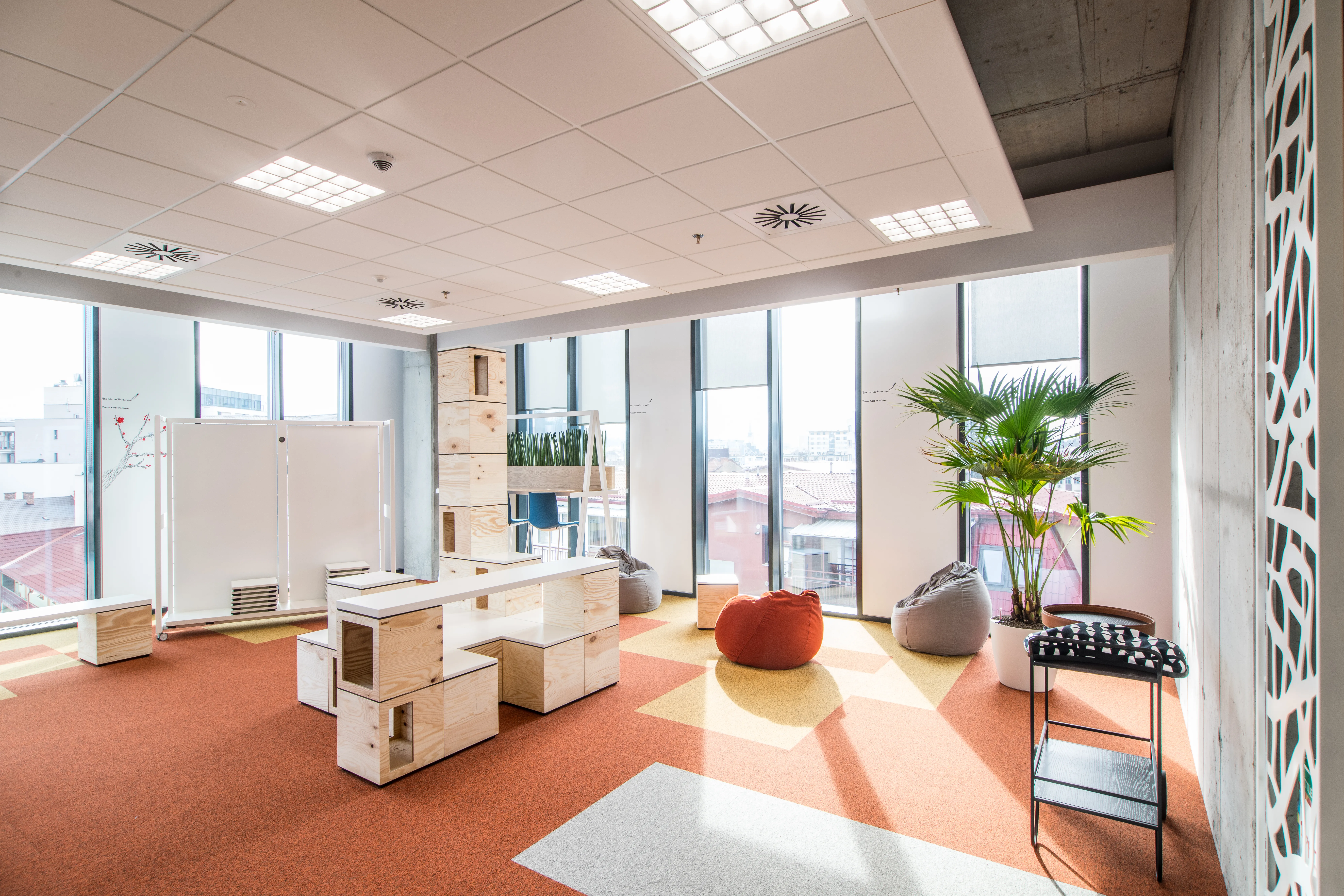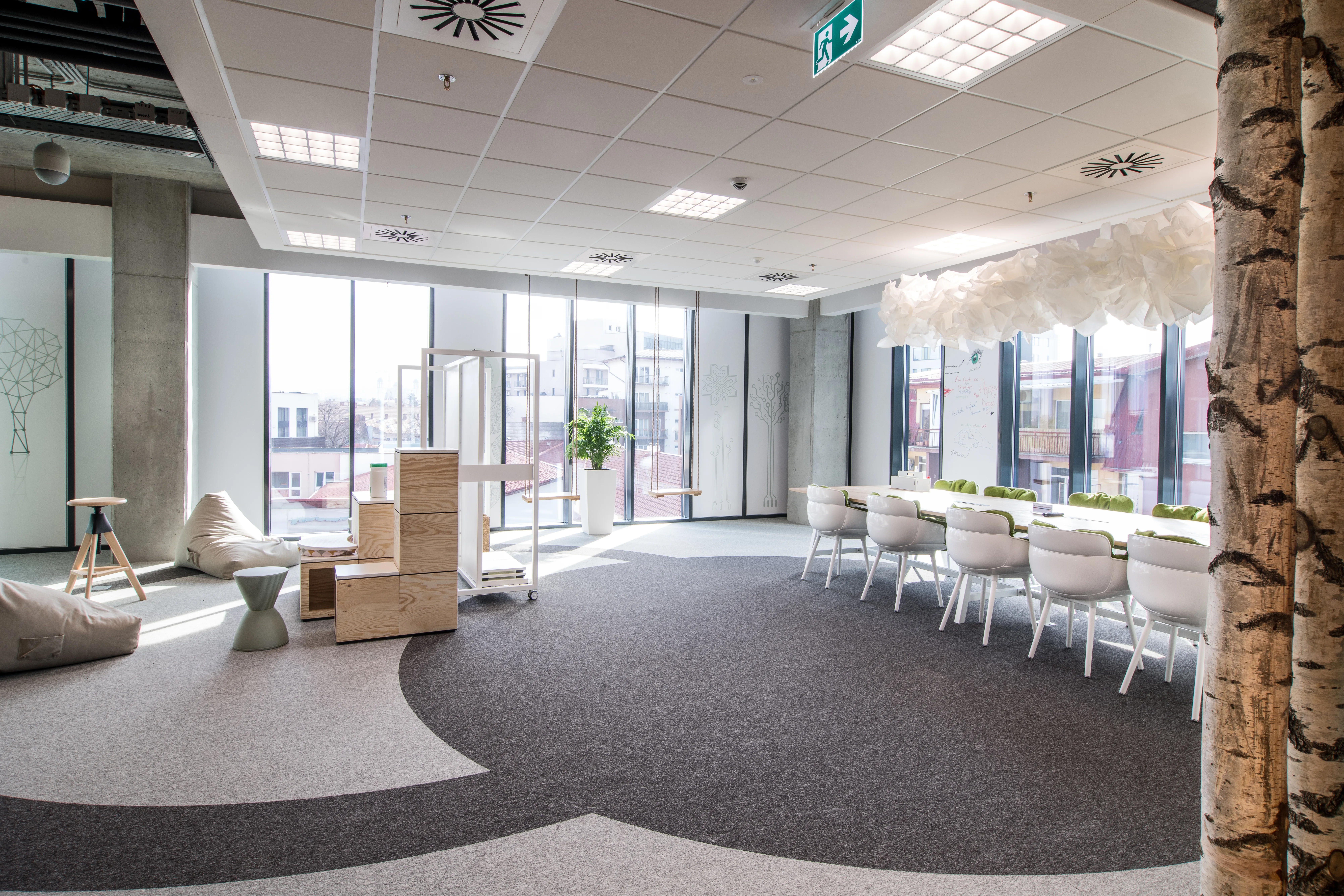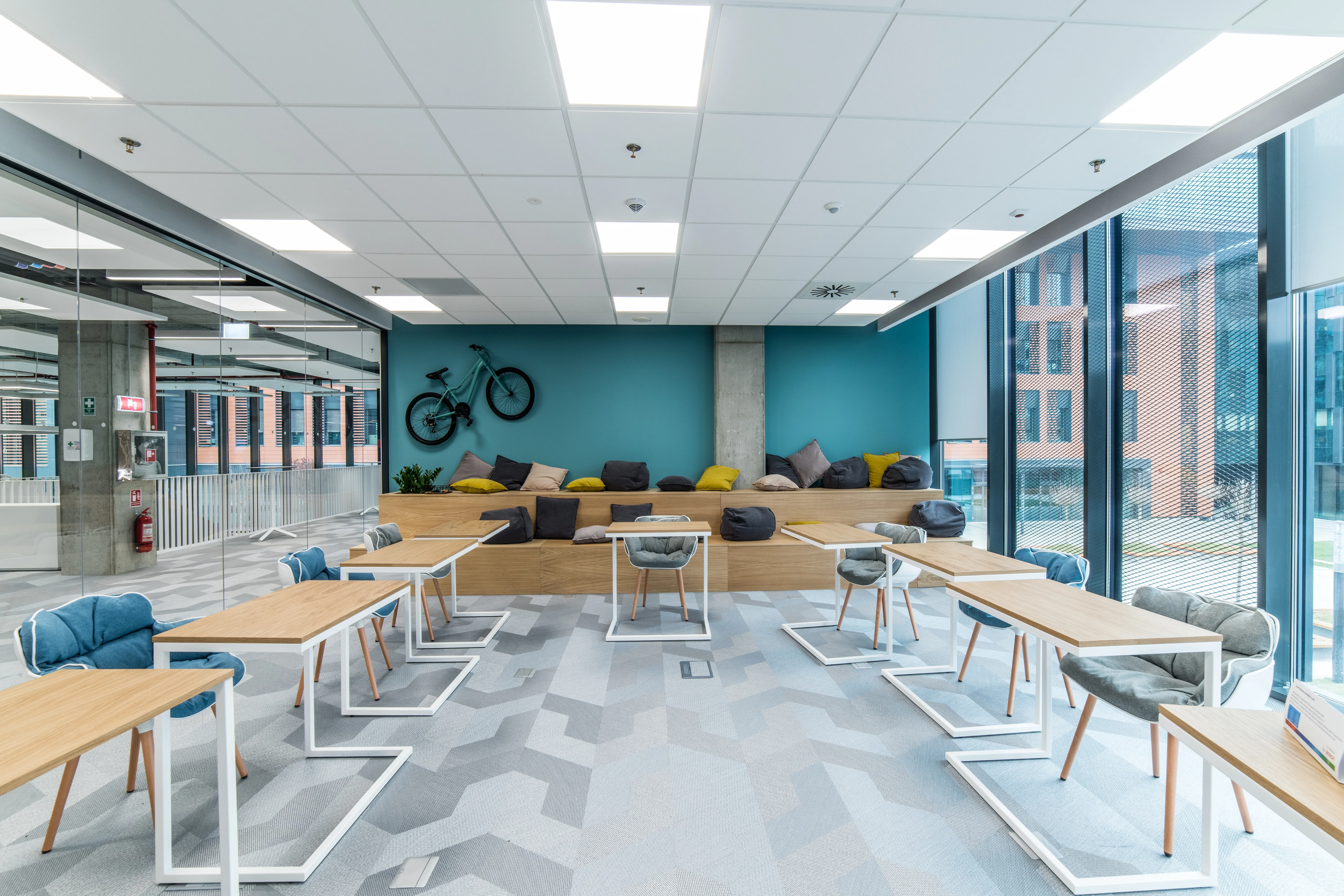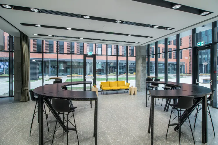 Adițional spațiilor de lucru inovatoare, cum sunt birourile comune și spațiile deschise, sălile de ședințe diversificate, cele de training sau zonele de relaxare concepute la comandă, noua clădire oferă diferite facilități precum parcare subterană, raste pentru biciclete, centru medical, zonă de gimnastică și spații personalizate, cum sunt zonele de tip Design Thinking sau Hub-ul de Inginerie. Acestea din urmă vor deservi atât dezvoltarea proiectelor interne Bosch, cât și ca loc de desfășurare pentru evenimente precum hackatoane, concursuri academice sau alte proiecte dedicate studenților. Până la 70 de procente din mobilierul existent în spațiile de birouri a fost conceput și personalizat de mici producători locali și afaceri de familie, reiterând astfel sprijinul companiei față de ecosistemul local.