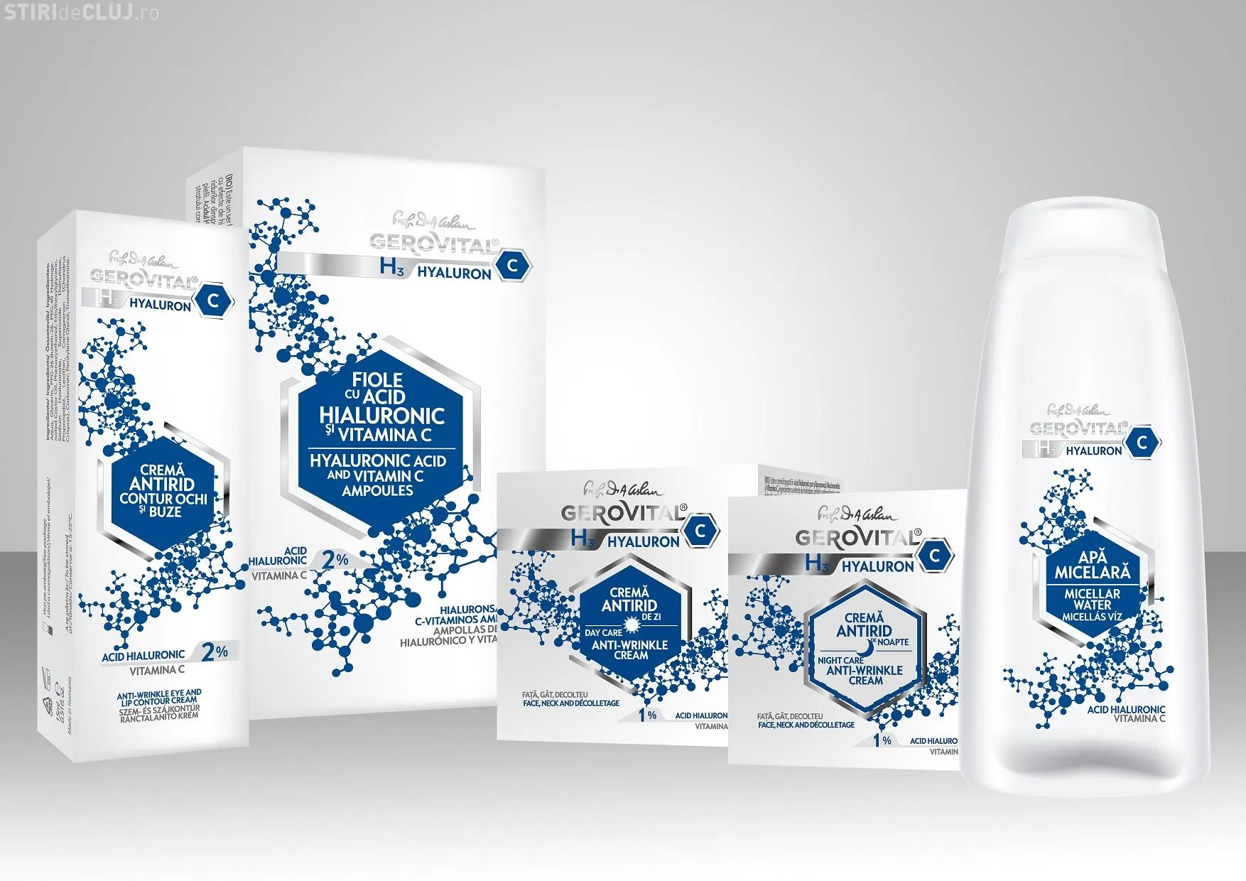 Noua gamă Gerovital H3 Hyaluron C a fost lansată pe piaţă cu 5 produse destinate îngrijirii tenului normal cu tendinţă de uscare şi se adresează femeilor cu vârsta cuprinsă între 30-50 de ani.