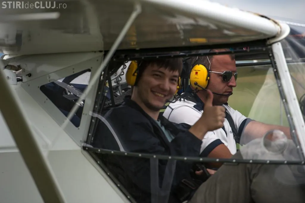 Studenții premiați la UBBots și BattleLab Robotica 2014 au mai primit un cadou special, un zbor deasupra Clujului cu un avion pe care au putut să îl piloteze și ei.