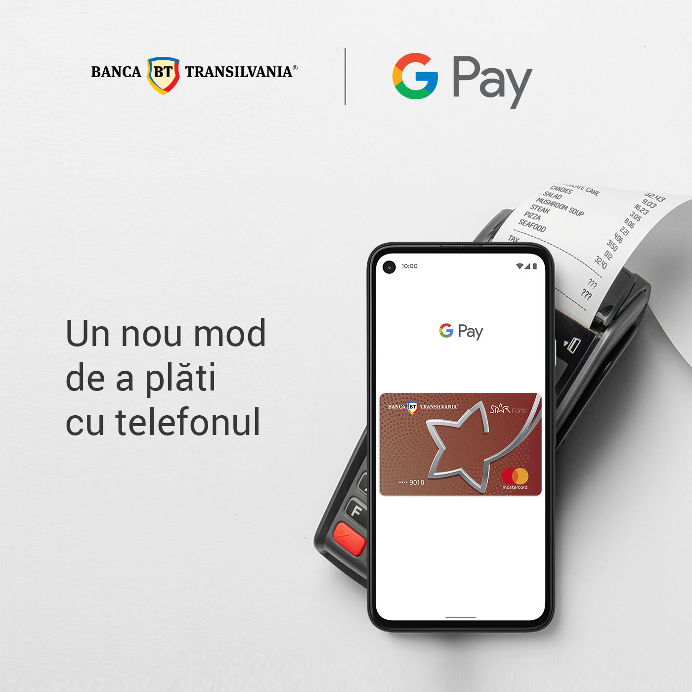 Adaugarea cardului BT in Google Pay se poate face din wallet-ul BT Pay, nefiind nevoie de alte aplicatii. Platile se fac simplu si rapid, in doi pasi – Unlock & Pay – prin deblocarea telefonului si apropierea acestuia de POS.