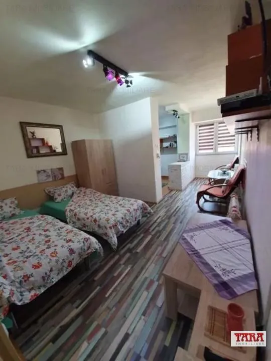 Are suprafata de 29 mp, este compartimentat in hol, camera, loc de servit masa, bucatarie, baie.