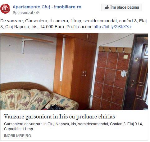 Cluj: Garsonieră de 11 mp fără baie = preț 14.500 de euro